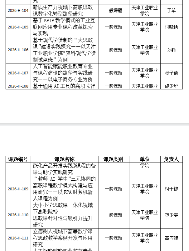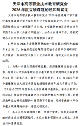 近日,天津市高等职业技术教育研究会公布2026年度立项课题名单,我校获批8项课题立项,涵盖数字化转型、产教融合、AI赋能、课程思政等职业教育前沿与重点领域,彰显了学校在教育教学改革与科研创新领域的坚实实力。
